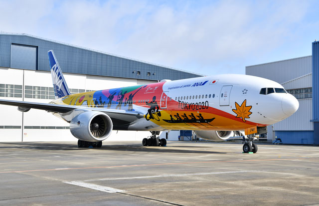 伊丹空港で塗装を終えて公開されたANAのHELLO 2020 JET=18年1月27日 PHOTO: Tadayuki YOSHIKAWA/Aviation Wire