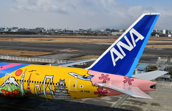 伊丹空港で塗装を終えて公開されたANAのHELLO 2020 JET=18年1月27日 PHOTO: Tadayuki YOSHIKAWA/Aviation Wire