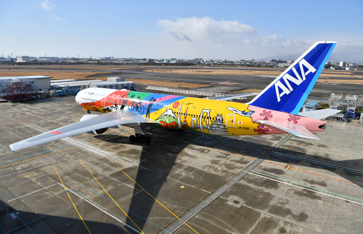 伊丹空港で塗装を終えて公開されたANAのHELLO 2020 JET=18年1月27日 PHOTO: Tadayuki YOSHIKAWA/Aviation Wire
