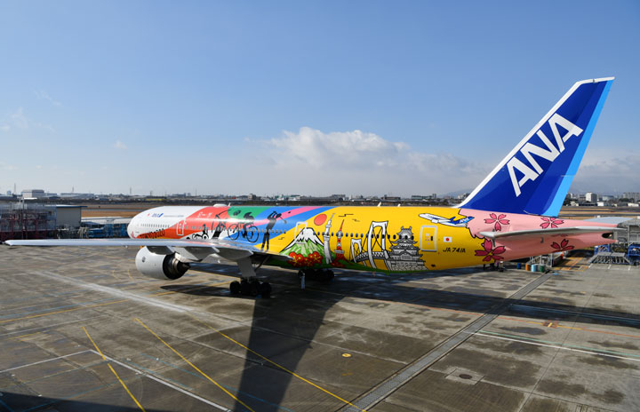 伊丹空港で塗装を終えて公開されたANAのHELLO 2020 JET=18年1月27日 PHOTO: Tadayuki YOSHIKAWA/Aviation Wire