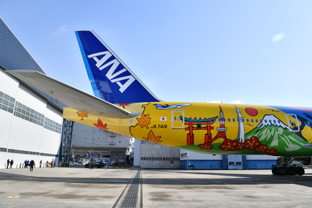 伊丹空港で塗装を終えて公開されたANAのHELLO 2020 JET=18年1月27日 PHOTO: Tadayuki YOSHIKAWA/Aviation Wire
