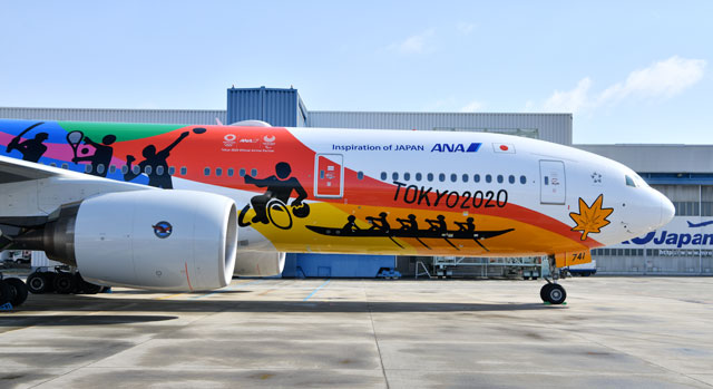伊丹空港で塗装を終えて公開されたANAのHELLO 2020 JET=18年1月27日 PHOTO: Tadayuki YOSHIKAWA/Aviation Wire