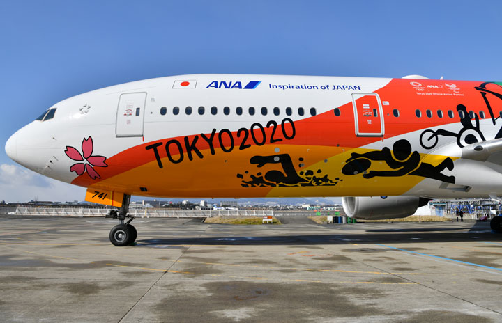 伊丹空港で塗装を終えて公開されたANAのHELLO 2020 JET=18年1月27日 PHOTO: Tadayuki YOSHIKAWA/Aviation Wire