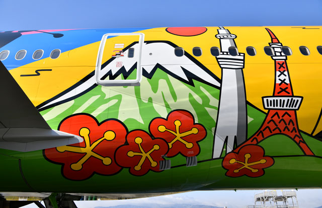 伊丹空港で塗装を終えて公開されたANAのHELLO 2020 JET=18年1月27日 PHOTO: Tadayuki YOSHIKAWA/Aviation Wire