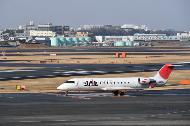 伊丹空港を出発するジェイエアのCRJ200=18年1月27日 PHOTO: Tadayuki YOSHIKAWA/Aviation Wire