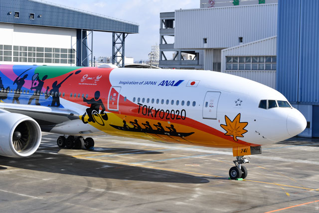 伊丹空港で塗装を終えて公開されたANAのHELLO 2020 JET=18年1月27日 PHOTO: Tadayuki YOSHIKAWA/Aviation Wire
