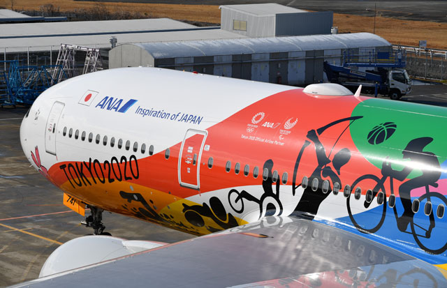 伊丹空港で塗装を終えて公開されたANAのHELLO 2020 JET=18年1月27日 PHOTO: Tadayuki YOSHIKAWA/Aviation Wire