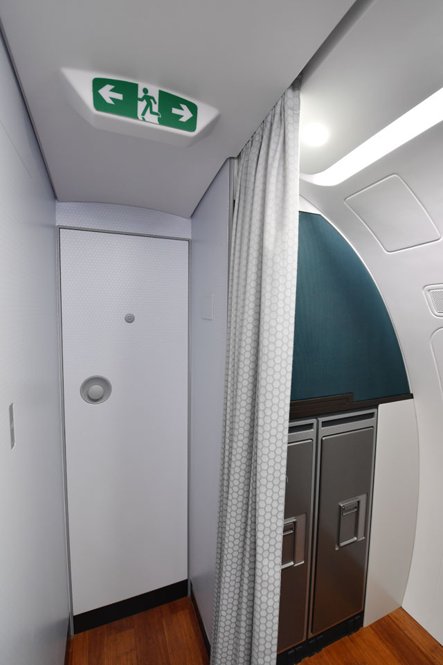 シンガポール航空ショーに出展されたE190-E2のモックアップ前方部分=18年2月6日 PHOTO: Tadayuki YOSHIKAWA/Aviation Wire