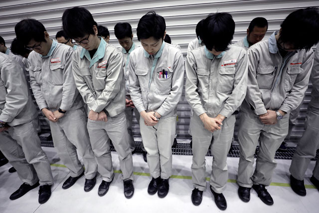 納入式の神事に参加する川崎重工の社員ら=18年2月6日 PHOTO: Kiyoshi OTA/Aviation Wire