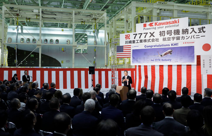 納入式であいさつする川崎重工の並木航空宇宙カンパニープレジデント=18年2月6日 PHOTO: Kiyoshi OTA/Aviation Wire