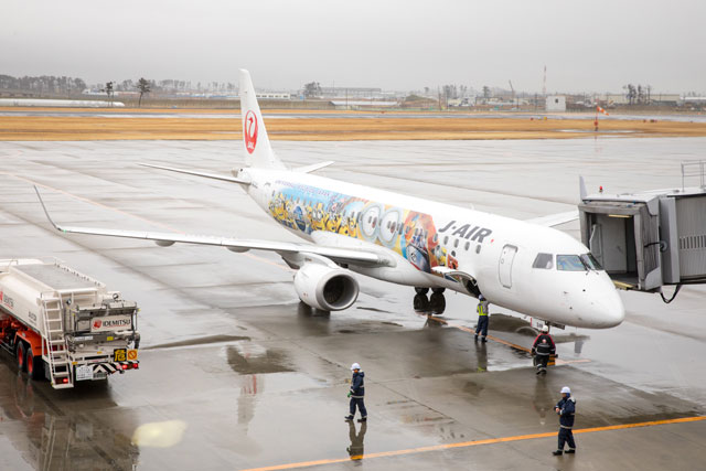 仙台空港で出発を待つ福岡行きJL3530便=18年3月1日 PHOTO: Tatsuyuki TAYAMA/Aviation Wire