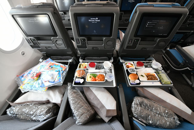 関空で日本初公開されたシンガポール航空の787-10のエコノミークラス新シート=18年4月4日 PHOTO: Tadayuki YOSHIKAWA/Aviation Wire