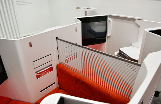 ジャムコがハンブルクで初公開したビジネスクラスシートのコンセプトモデルのパーティション=18年4月11日 PHOTO: Tadayuki YOSHIKAWA/Aviation Wire