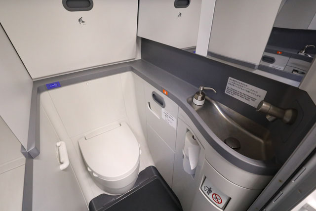 スカイマークが破綻後初めて受領した737-800「JA73AA」の後方左ラバトリー=18年8月15日 PHOTO: Masahiro SATO/Aviation Wire