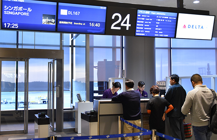 デルタ航空のシンガポール行きDL167便が出発する成田空港第1ターミナルの24番搭乗口=18年11月7日 PHOTO: Yusuke KOHASE/Aviation Wire