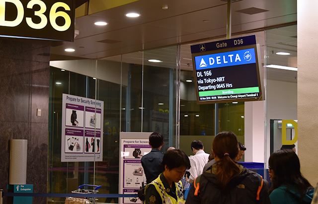 デルタ航空の成田行きDL166便が出発するシンガポール・チャンギ国際空港のD36番搭乗口=18年11月10日 PHOTO: Yusuke KOHASE/Aviation Wire