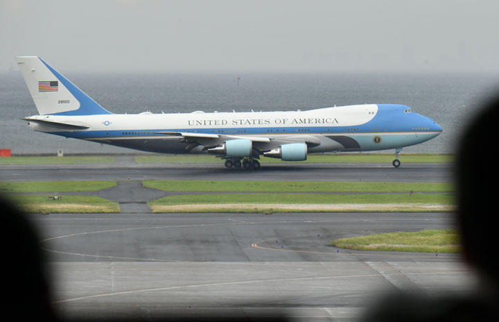トランプ大統領を乗せ羽田空港を離陸する大統領専用機VC-25Aエアフォース・ワン=19年5月28日 PHOTO: Tadayuki YOSHIKAWA/Aviation Wire