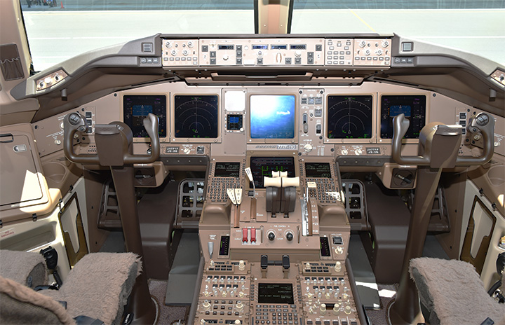 ANAカーゴ777Fの操縦席=19年6月13日 PHOTO: Yusuke KOHASE/Aviation Wire