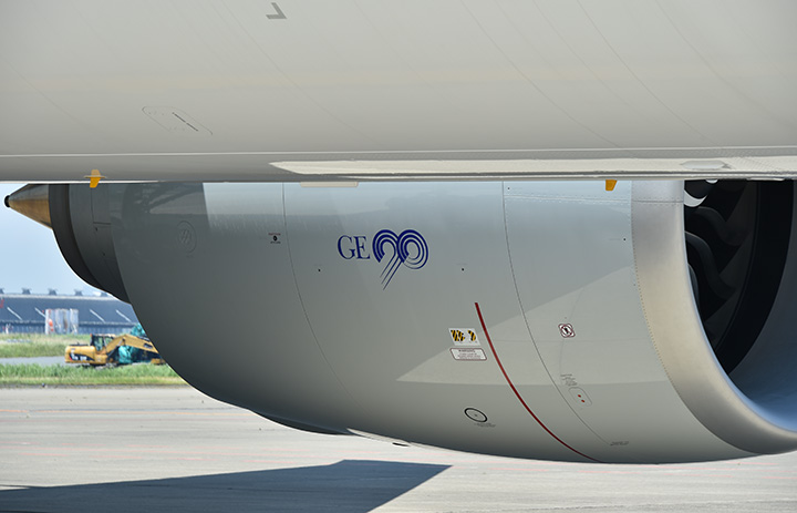ANAカーゴの777Fに搭載するエンジンGE90=19年6月13日 PHOTO: Yusuke KOHASE/Aviation Wire