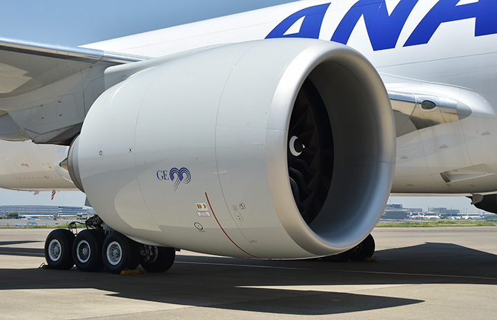 ANAカーゴの777Fに搭載するエンジンGE90=19年6月13日 PHOTO: Yusuke KOHASE/Aviation Wire