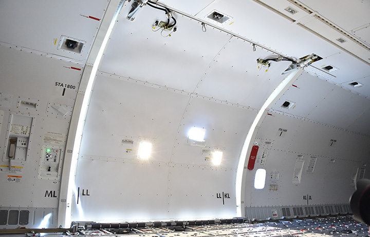 ANAカーゴ777Fの機内から見た貨物扉=19年6月13日 PHOTO: Yusuke KOHASE/Aviation Wire