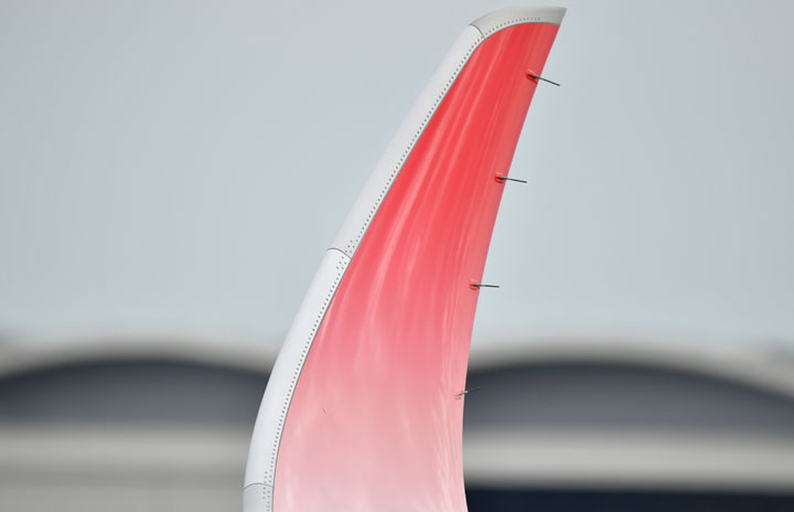 トゥールーズでJALに引き渡されたA350初号機の翼端=19年6月13日 PHOTO: Tadayuki YOSHIKAWA/Aviation Wire