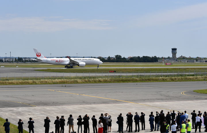 トゥールーズを離陸するJALのA350初号機=19年6月13日 PHOTO: Tadayuki YOSHIKAWA/Aviation Wire
