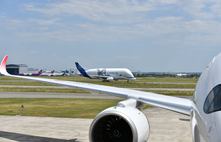 トゥールーズで飛行試験に向かうベルーガXL=19年6月13日 PHOTO: Tadayuki YOSHIKAWA/Aviation Wire
