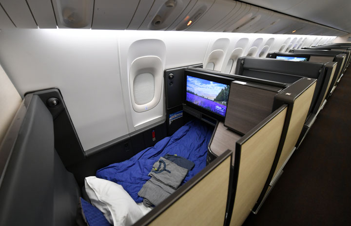 ドア付き個室タイプを採用したANAの777-300ER新ビジネスクラス=19年7月11日 PHOTO: Tadayuki YOSHIKAWA/Aviation Wire