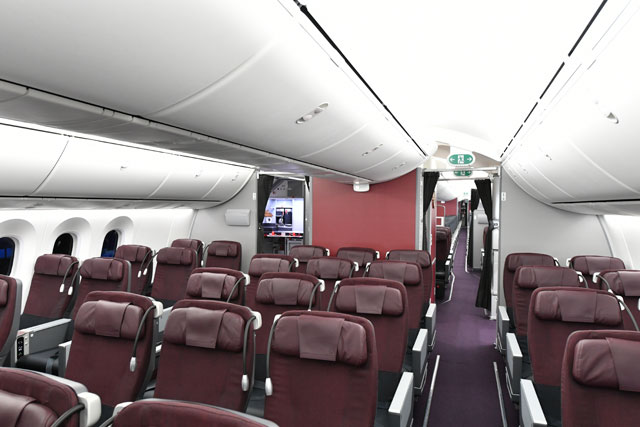 JALの787-8国内線仕様初号機のクラスJ前方エリア=19年10月16日 PHOTO: Tadayuki YOSHIKAWA/Aviation Wire