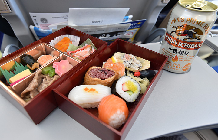スカイマークのサイパン行き初便で提供する機内食=19年11月29日 PHOTO: Yusuke KOHASE/Aviation Wire