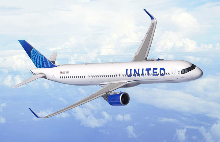 ユナイテッド航空のA321XLRのイメージイラスト(エアバス提供)