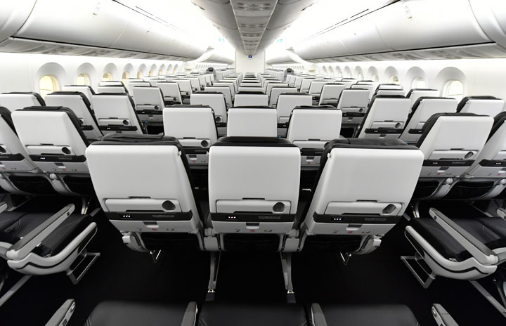 個人用画面を設置しないZIPAIRの787-8のエコノミークラス「Standard」=19年12月18日 PHOTO: Tadayuki YOSHIKAWA/Aviation Wire