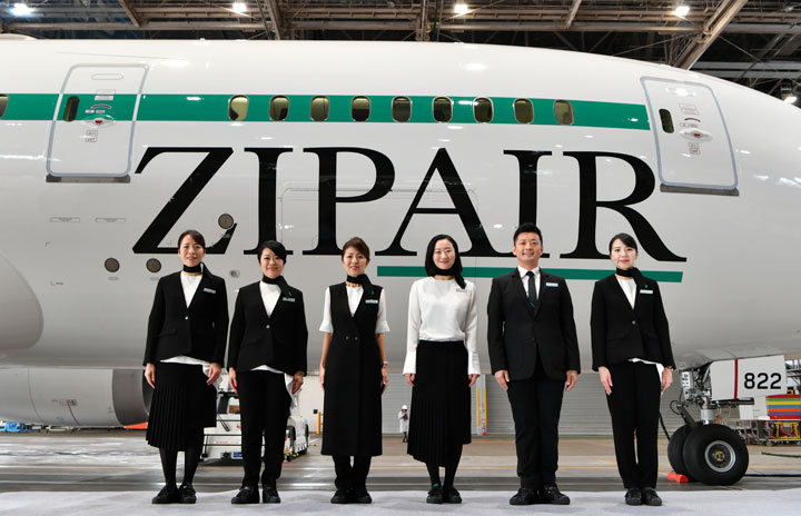 787-8の前に整列したZIPAIRの客室乗務員=19年12月18日 PHOTO: Tadayuki YOSHIKAWA/Aviation Wire