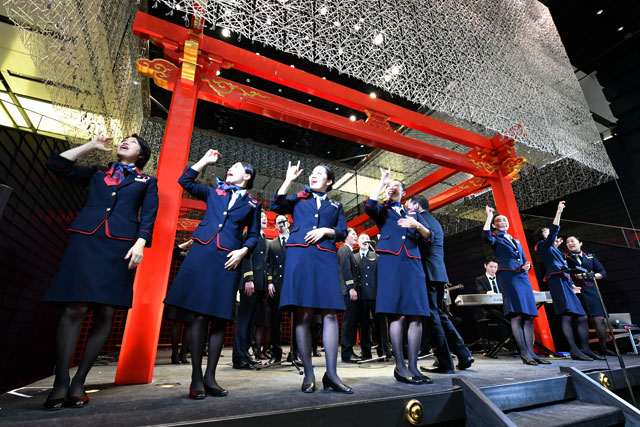 羽田国際線ターミナルで合唱を披露するJAL空飛ぶ合唱団と手話べりサロンのメンバー=19年12月22日 PHOTO: Tadayuki YOSHIKAWA/Aviation Wire