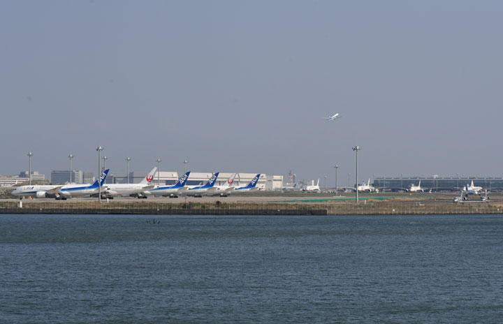 羽田空港に並ぶANAとJALの旅客機=20年4月4日 PHOTO: Tadayuki YOSHIKAWA/Aviation Wire