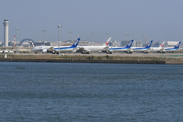 羽田空港に並ぶANAとJALの旅客機=20年4月4日 PHOTO: Tadayuki YOSHIKAWA/Aviation Wire