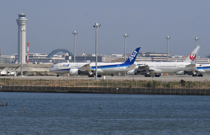 羽田空港に並ぶANAとJALの旅客機=20年4月4日 PHOTO: Tadayuki YOSHIKAWA/Aviation Wire