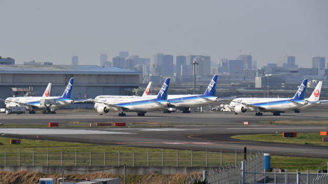 羽田空港に並ぶANAとJALの旅客機=20年4月4日 PHOTO: Tadayuki YOSHIKAWA/Aviation Wire