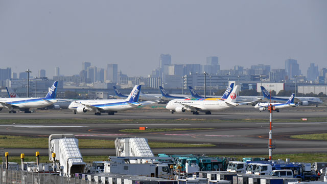 羽田空港に並ぶANAとJALの旅客機=20年4月4日 PHOTO: Tadayuki YOSHIKAWA/Aviation Wire