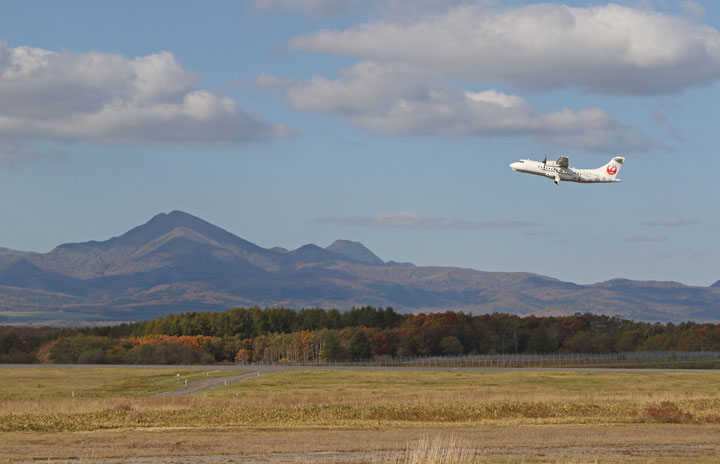 中標津空港を離陸する慰霊チャーターJL4367便=20年10月21日 PHOTO: Stringer/Aviation Wire