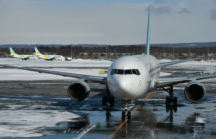 新千歳空港に到着するエア・ドゥの767初号機による羽田発HD19便=21年1月20日 PHOTO: Tadayuki YOSHIKAWA/Aviation Wire