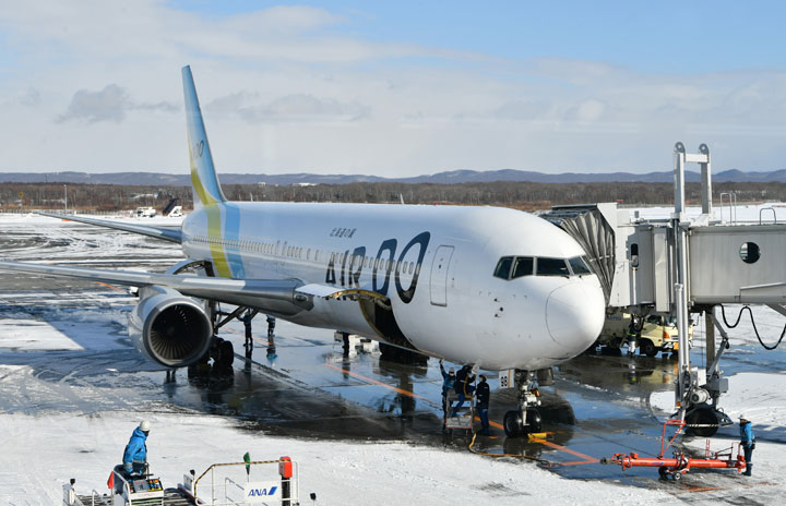 新千歳空港に到着したエア・ドゥの767初号機による羽田発HD19便=21年1月20日 PHOTO: Tadayuki YOSHIKAWA/Aviation Wire