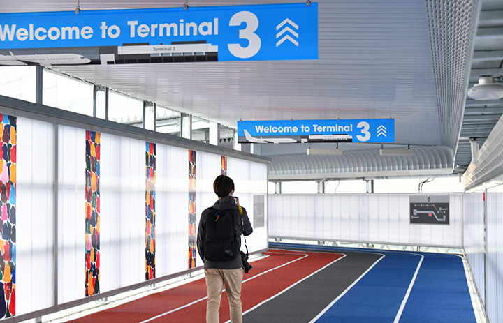 5日から供用を開始する成田空港第3ターミナルの新アクセス通路=22年4月4日 PHOTO: Yusuke KOHASE/Aviation Wire