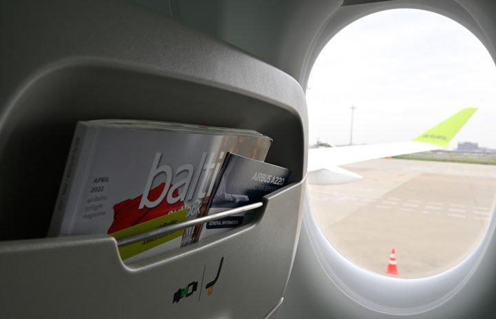 羽田空港で公開されたエア・バルティックのA220-300の大きな窓=22年5月9日 PHOTO: Tadayuki YOSHIKAWA/Aviation Wire