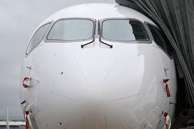 羽田空港で公開されたエア・バルティックのA220-300のコックピット=22年5月9日 PHOTO: Tadayuki YOSHIKAWA/Aviation Wire