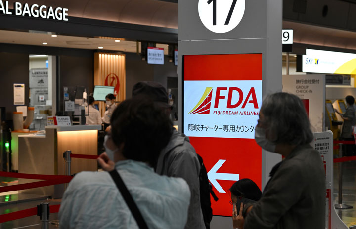 羽田空港に設けられたFDA隠岐チャーター便のチェックインカウンター=22年5月15日 PHOTO: Tadayuki YOSHIKAWA/Aviation Wire