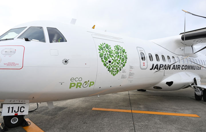 エコのハートが描かれた鹿児島空港に駐機中のJACのATR通算11号機ATR42-600 JA11JC=22年6月1日 PHOTO: Tadayuki YOSHIKAWA/Aviation Wire