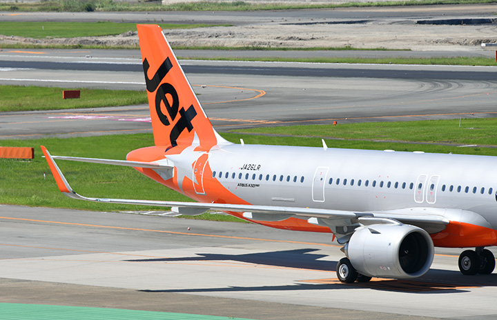 福岡空港に到着するジェットスター・ジャパンのA321LR初便となった成田発GK503便=22年7月1日 PHOTO: Yusuke KOHASE/Aviation Wire