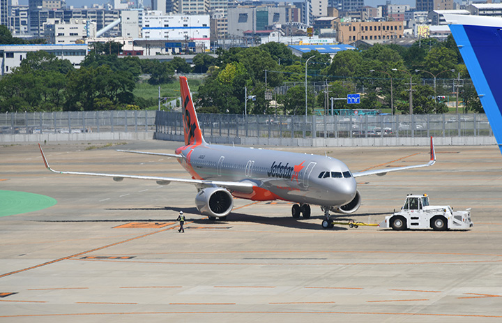 A321LRで運航し福岡空港を出発するジェットスター・ジャパンの成田行きGK502便=22年7月1日 PHOTO: Yusuke KOHASE/Aviation Wire